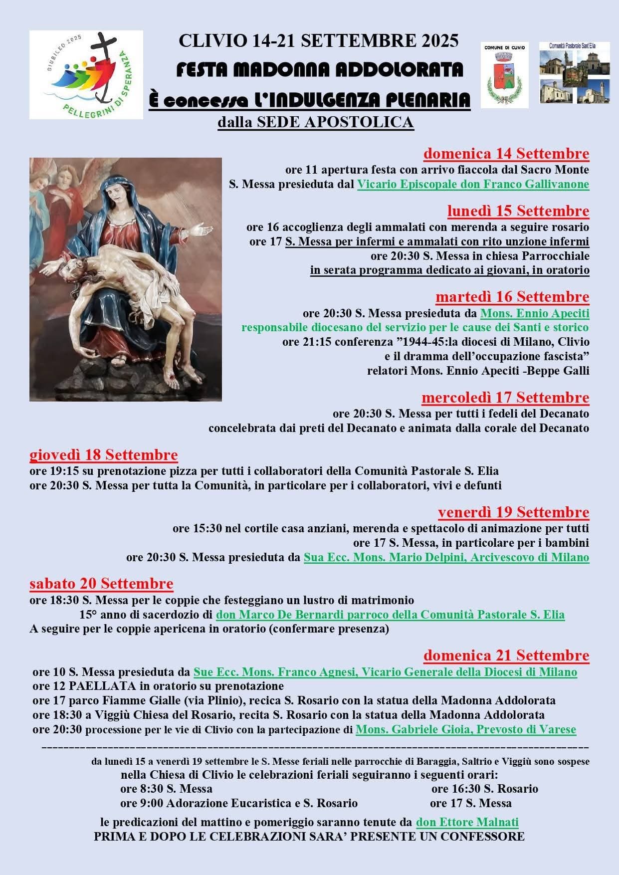 Festa Madonna Addolorata e Chiesa Giubilare Clivio 2025